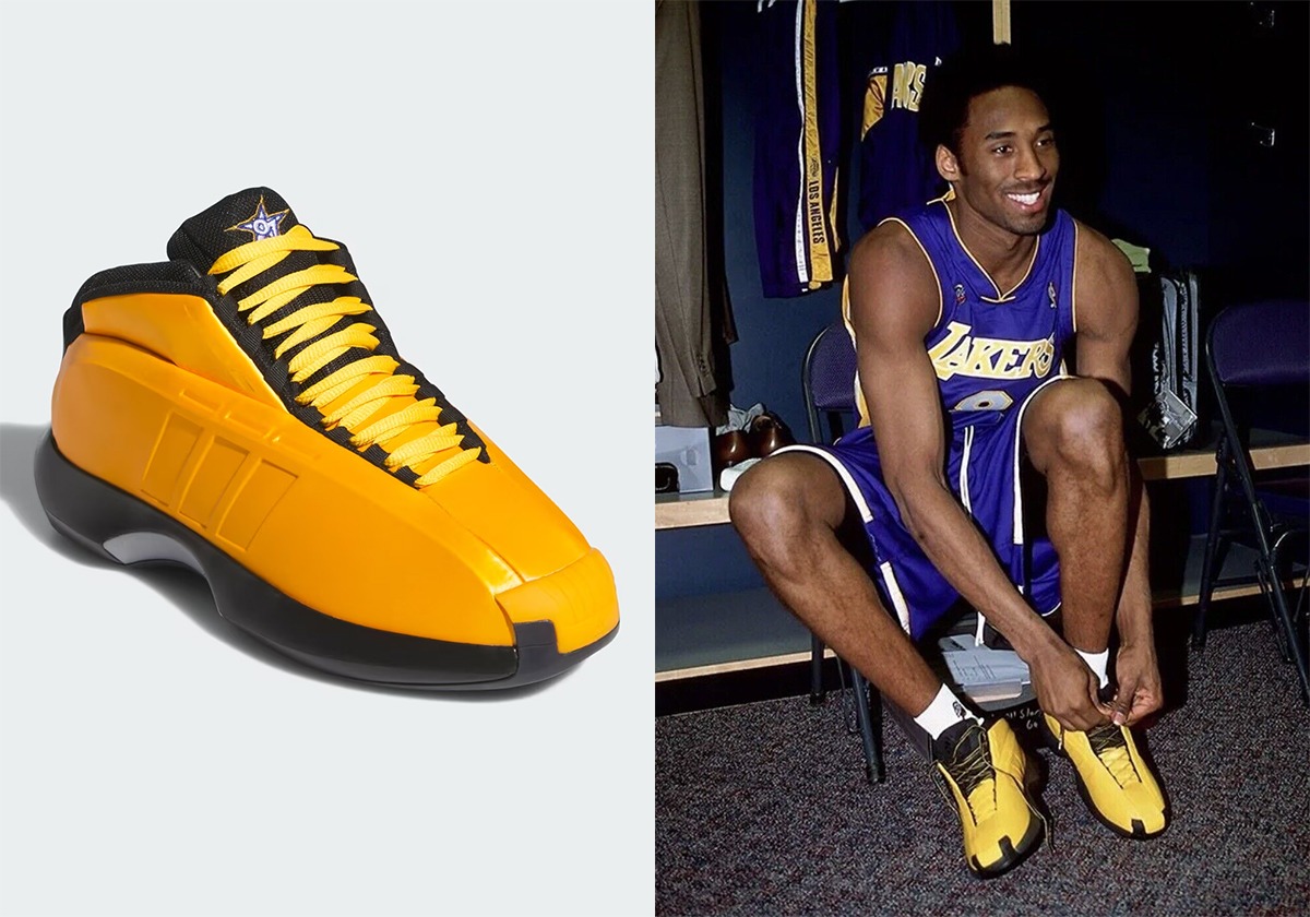 Le premier modèle marquant de cette collaboration a été la Adidas KB8, lancée en 1997. Cette chaussure, qui a été renommée plus tard Adidas Crazy 8, est devenue une icône en raison de son design unique et de sa technologie Feet You Wear, conçue pour offrir une ergonomie et un confort améliorés. La KB8 est rapidement devenue populaire parmi les joueurs de basketball pour sa stabilité et son style audacieux.